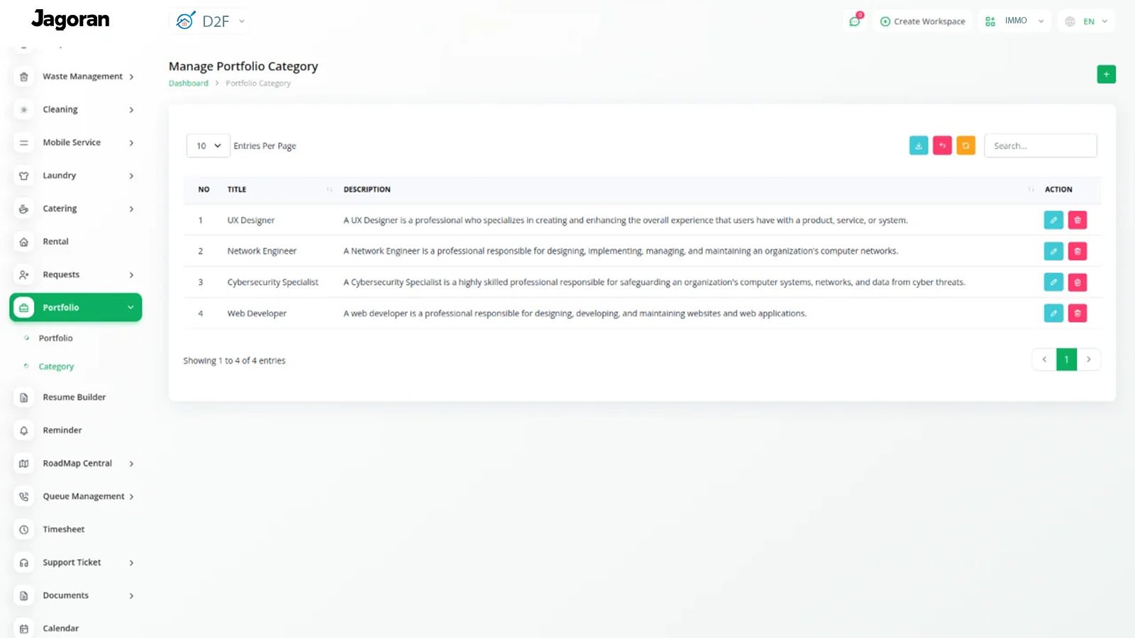 Assign categories to portfolio entries to improve organization and filtering.