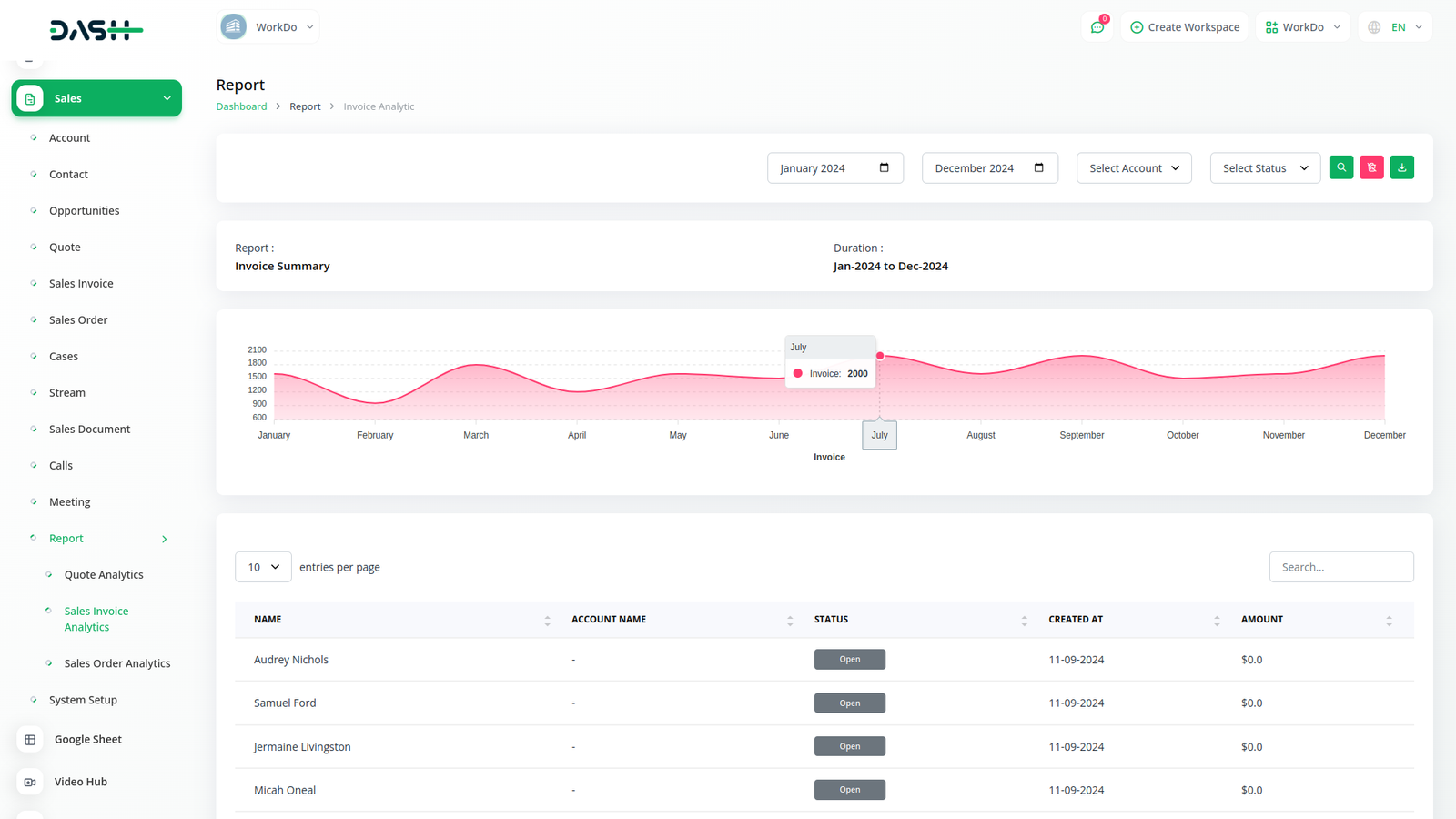 In the sales invoice, you can view the monthly report and in the sales invoice. You can also view the assigned accountant status-wise.