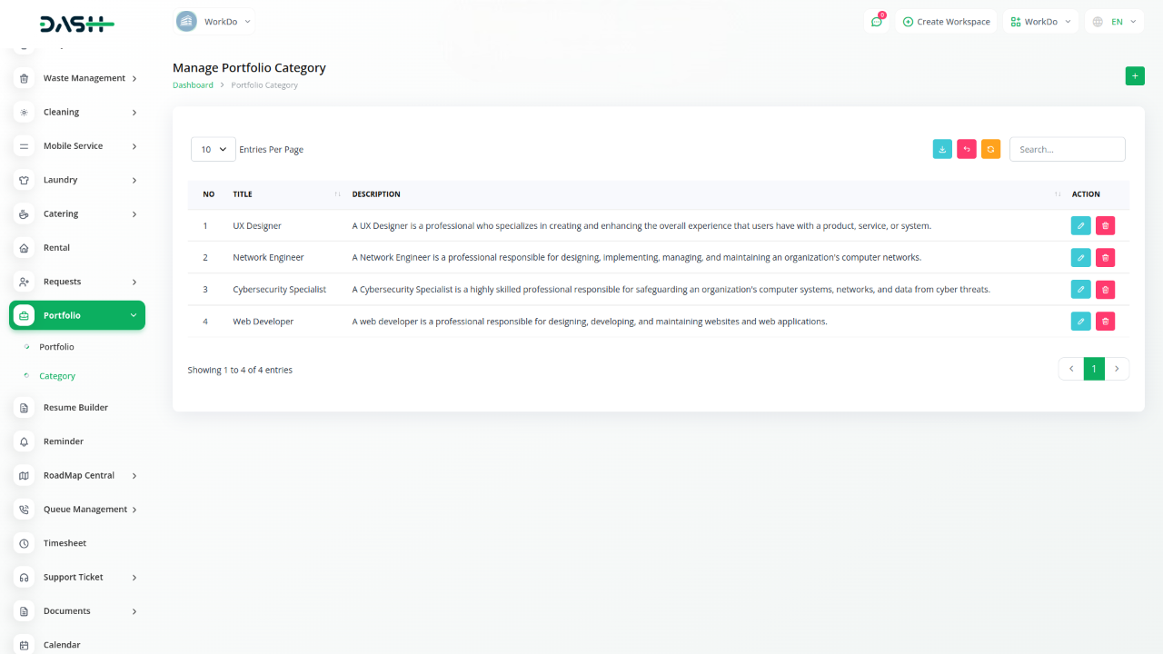 Assign categories to portfolio entries to improve organization and filtering.