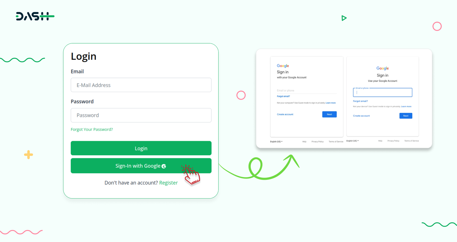 Effortlessly log in with your Google account using Dash SaaS`s Sign-In with Google module.